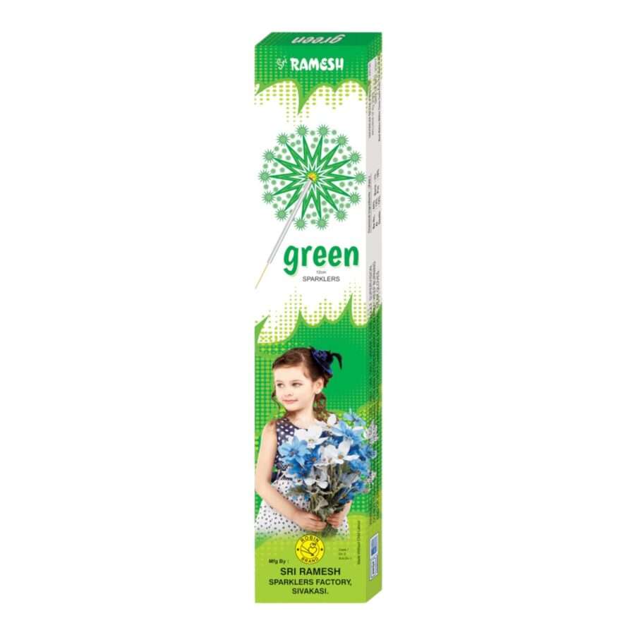 The 12 CM Green Sparklers are crafted to bring a captivating and colorful sparkle to your celebrations. With their eye-catching green glow and moderate burn time, these sparklers enhance any gathering, from birthdays to festivals, with a touch of excitement and elegance. The longer 12 CM size offers a sustained sparkling effect, allowing you to fully enjoy the bright, eco-friendly display. Lightweight and easy to handle, these sparklers are designed for safe use by both children (with supervision) and adults. Low smoke production makes them ideal for both indoor and outdoor events, ensuring a clean and enjoyable experience for all.