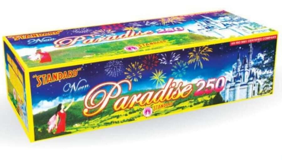 The 250 Shots Paradise firecracker creates a spectacular aerial display with 250 vibrant bursts of color and light. It?s ideal for festivals and large outdoor gatherings, offering a mesmerizing visual experience.
