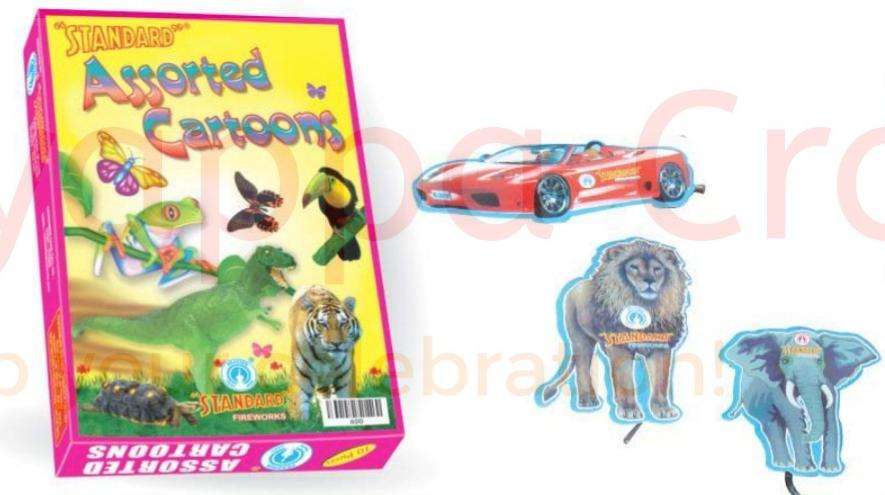 The Assorted Cartoons firecracker set includes fun and colorful snake and cartoon-themed firecrackers, perfect for kids? events. It creates a safe, low-intensity display with minimal smoke.