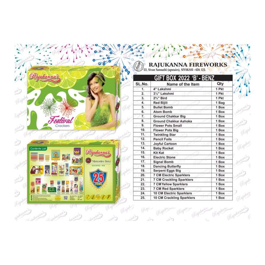 Light up your celebrations with the Benz Firecracker Set, a curated collection of 25 firecrackers that offers an array of sparkling lights, stunning colors, and delightful sounds for a joyful festive experience.