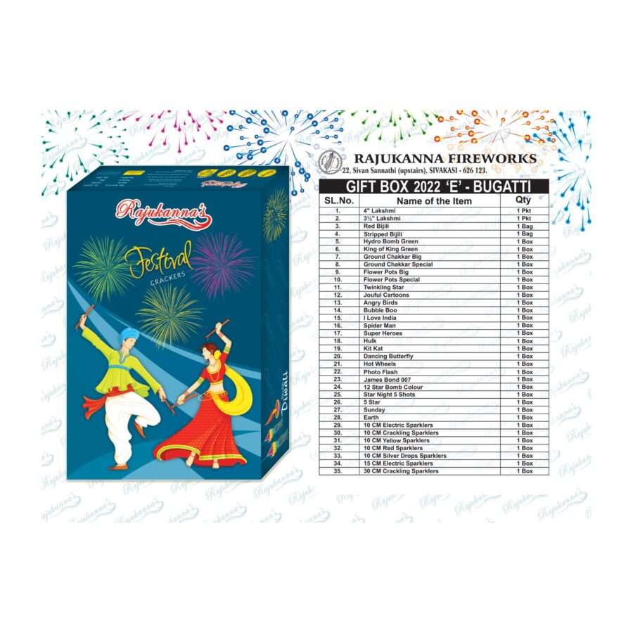 Introducing the Bugatti Firecracker Set, a refined assortment of 35 special firecrackers designed to bring a touch of luxury to your festivities. This collection features an array of fancy firecrackers, each carefully curated to provide a mesmerizing display of multi-colored sparks, elegant fountains, and dazzling aerial shots. Perfect for festivals, weddings, or any special event, the Bugatti set is crafted for those who want to celebrate in style. With its easy handling and family-friendly design, this set promises a safe and delightful experience that will captivate both kids and adults. Let your celebrations shine with the brilliance of Bugatti’s fancy firecrackers!