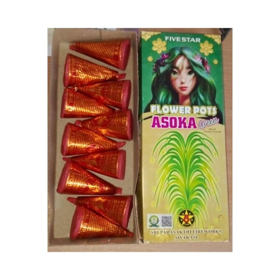 Flower Pot Ashoka (Green) creates a mesmerizing green fountain of sparks that light up your festivities. This firecracker offers a unique and dazzling display of green sparks, adding a refreshing glow to any celebration.