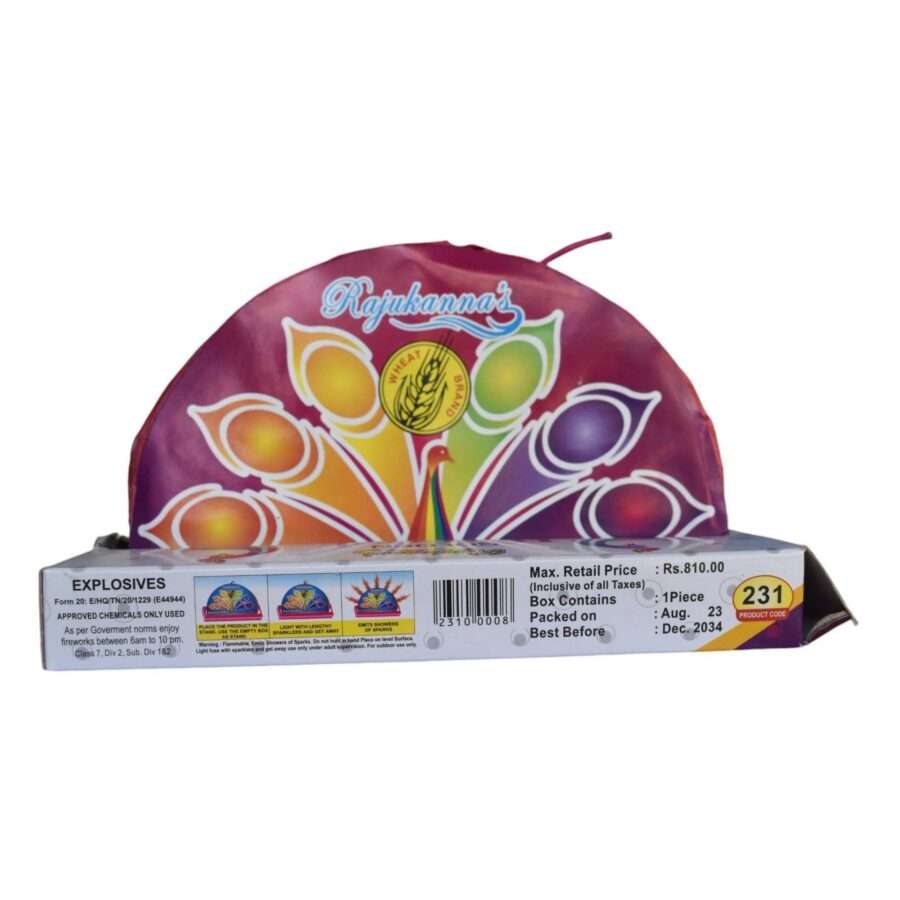 The Golden Peacock Fancy Fountain firecracker adds a touch of class and grandeur to your celebrations. Once lit, it showcases a magnificent display of golden sparks that fan out like a peacock’s plume, complemented by a subtle crackling effect. This firecracker is designed for moments of joy, bringing charm and delight to festivals, parties, and family gatherings. Its balanced noise level and graceful burn time offer a captivating show without overwhelming the senses. Whether it’s Diwali, a wedding, or any special occasion, this fancy fountain will leave your guests in awe, bringing elegance and a dazzling touch to your events.