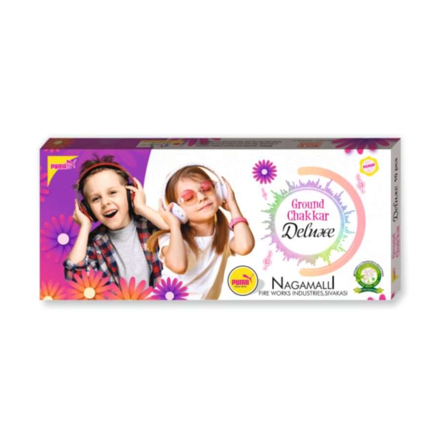 The Ground Chakkars Deluxe is designed to bring a sophisticated sparkle to your celebrations. With vibrant colors and smooth rotations, this firecracker elevates every occasion with its deluxe charm and visually stunning display.