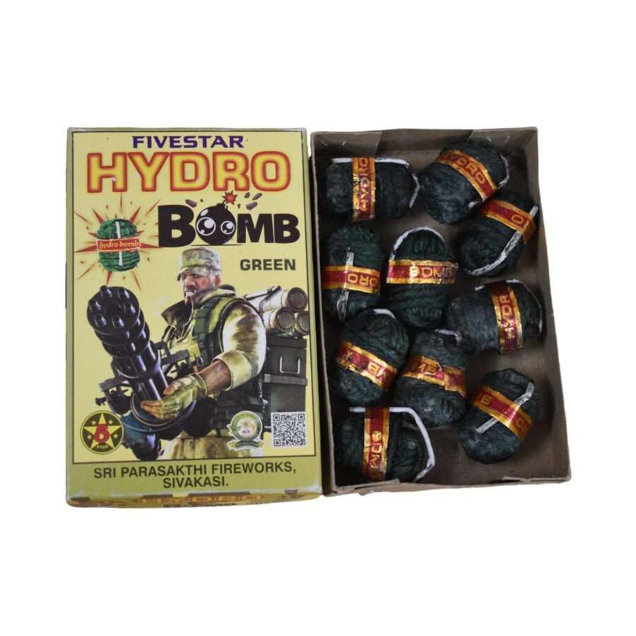 The Hydro Bomb Green is a powerful firecracker designed to deliver a strong, sharp sound that will enhance any festive occasion. With its compact size and intense noise, it is perfect for festivals, weddings, and outdoor events where you want to make a big impact. Its quick burn ensures an immediate, electrifying burst of sound, lighting up the atmosphere with joy and excitement. This firecracker is easy to handle and adds a touch of thrill to your event while following all safety guidelines for responsible enjoyment.