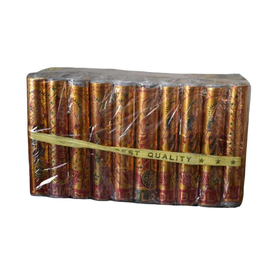 The Lakshmi Gold firecracker is all about adding a golden glow to your celebrations. This special firecracker produces a bright, eye-catching display combined with a pleasing sound effect that captures the festive spirit. It’s designed for those who want to add a touch of gold to their events, creating a visual treat that mesmerizes the audience. Its manageable size makes it suitable for both small and large gatherings. With a moderate burn time, it lights up the sky beautifully and safely, making it an ideal firecracker for any festival or joyous occasion.