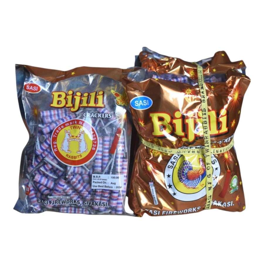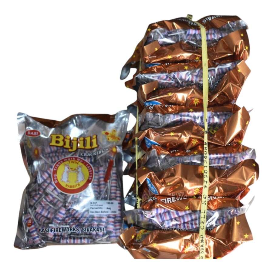 Add color and joy to your celebrations with Stripped Bijili firecrackers! This pack of 100 vibrant, striped crackers delivers bright flashes and exciting crackling sounds, perfect for all festive occasions.