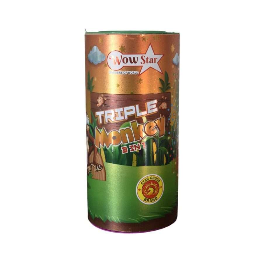 Get ready to triple the fun with the Triple Monkey 3 in 1 Fancy Fountain. A dynamic trio of sparkling color, lively crackling sounds, and dazzling effects, this firecracker lights up the night sky with festive energy and an exciting multi-phase display for any celebration.